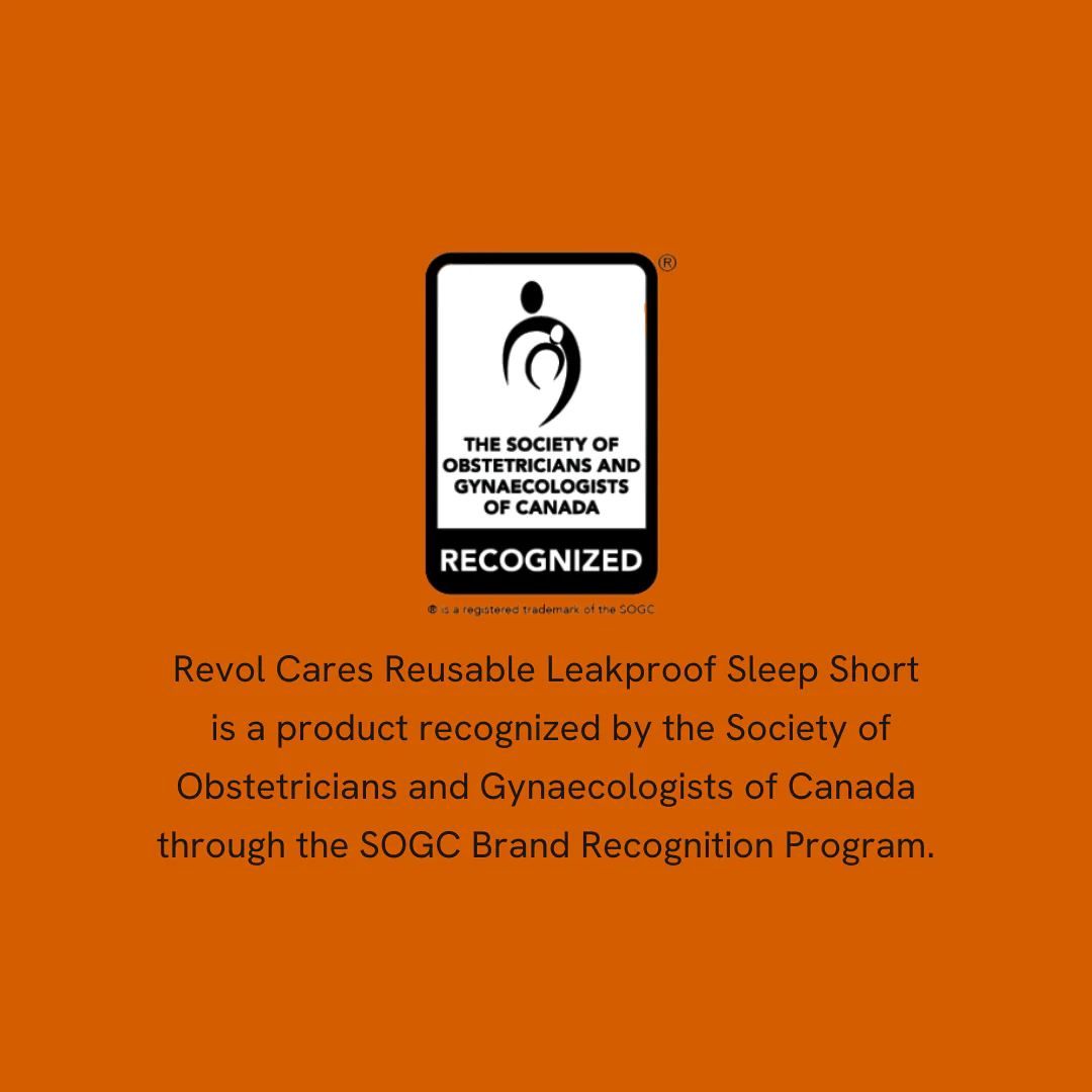 Revol Cares Reusable Leakproof Sleep Short is a product recognized by the Society of Obstetricians and Gynaecologists of Canada through the SOGC Brand Recognition Program.